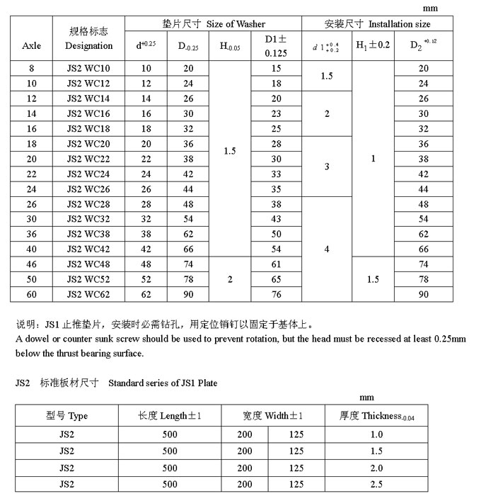 JS2 系列止推墊片標(biāo)準(zhǔn)尺寸