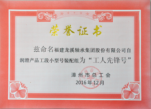 2016年,公司自潤(rùn)滑產(chǎn)品工段小型號(hào)裝配組收獲頗豐,繼獲得公司2015年度“先進(jìn)班組”后,又被漳州市總工會(huì)授予漳州市“工人先鋒號(hào)”及“女職工標(biāo)兵崗”榮譽(yù)稱號(hào)。
