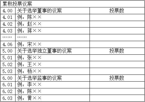 (六)采用累積投票制選舉董事、獨(dú)立董事和監(jiān)事的投票方式,詳見附件2