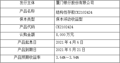 ?委托理財產品名稱:結構性存款CK2102424。
