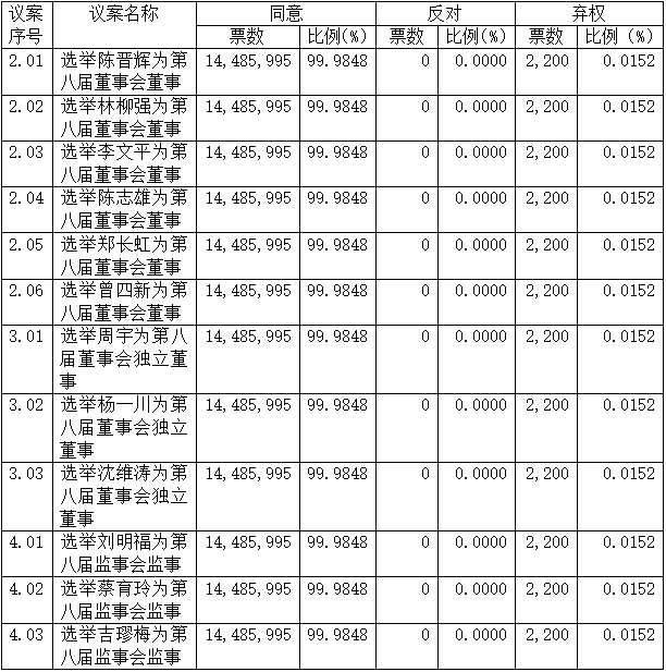 上述股東監(jiān)事與職工監(jiān)事鄭志義先生、陳朱池先生組成公司第八屆監(jiān)事會(huì)。