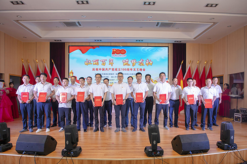 為熱烈慶祝中國共產(chǎn)黨成立100周年,謳歌黨的豐功偉績和偉大成就,展現(xiàn)在黨的領(lǐng)導(dǎo)下龍軸自強(qiáng)不息、闊步前行的精神風(fēng)貌,2021年6月29日晚,由公司黨委主辦、龍軸藝術(shù)團(tuán)及春之聲藝術(shù)團(tuán)協(xié)辦的“壯麗百年 筑夢龍軸”慶祝中國共產(chǎn)黨成立100周年文藝晚會在藍(lán)田三廠區(qū)龍軸集團(tuán)大禮堂隆重舉行。漳州市政府辦副主任吳維桑、漳州市國資委黨委委員、二級調(diào)研員盧宗金、九龍江集團(tuán)黨委副書記魏育健等嘉賓,公司黨委書記、董事長陳晉輝及領(lǐng)導(dǎo)班子其他成員出席晚會,黨總支、黨支部負(fù)責(zé)人,中層干部、業(yè)務(wù)主管及“兩先一優(yōu)”代表等參加。