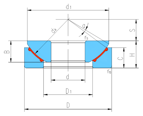 d | D | B | C | H | dk | S | d1 max | D1 min | rs,r1s min | α? ≈ | 動(dòng)載荷 Dynamic | 靜載荷 Static | ||