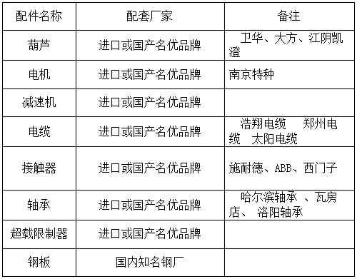 (8)起升機(jī)構(gòu):名優(yōu)品牌鋼絲繩葫蘆(如衛(wèi)華、大方、江陰凱澄等)。