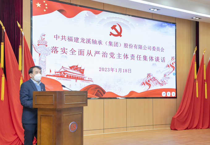 2023年1月18日,龍軸集團黨委書記、董事長陳晉輝就落實全面從嚴治黨主體責任,與公司領導班子成員、中層干部及權屬企業永軸公司、三齒公司班子成員進行集體談話。