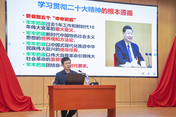培訓(xùn)班采取“集中培訓(xùn)+個人自學(xué)”的方式。集中培訓(xùn)期間,漳州市委黨校方賜德教授、陳賢濱副教授和閩南師范大學(xué)馬克思主義學(xué)院朱志明教授現(xiàn)場授課,充分結(jié)合國企實際,重點對黨的二十大主題、過去5年工作和新時代10年偉大變革的重大意義、堅定不移推進(jìn)中國式現(xiàn)代化、建設(shè)現(xiàn)代化產(chǎn)業(yè)體系、加快實施創(chuàng)新驅(qū)動發(fā)展戰(zhàn)略、深入實施人才強(qiáng)國戰(zhàn)略以及堅定不移全面從嚴(yán)治黨等方面內(nèi)容作專題講座,從不同角度深入解讀黨的二十大精神,深入淺出、分析透徹,對公司黨員干部更加全面準(zhǔn)確把握黨的二十大精神具有指導(dǎo)意義。參訓(xùn)人員凝神傾聽、認(rèn)真記錄,并利用自學(xué)時間靜心讀原文、潛心悟原理,推動黨的創(chuàng)新理論入腦入心。