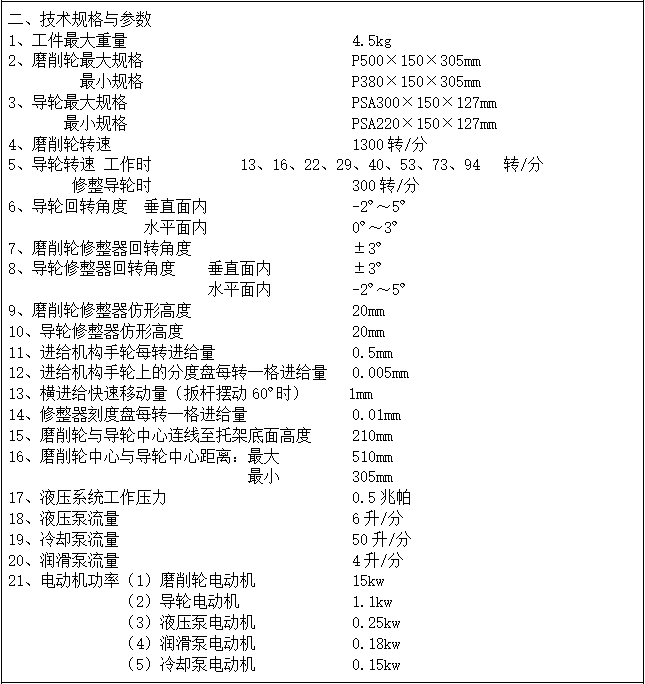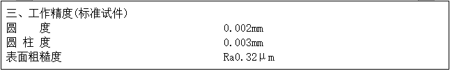 設(shè)備驗收時,根據(jù)實際生產(chǎn)情況,雙方協(xié)商選用其它產(chǎn)品型號作為驗收型號,以產(chǎn)品磨削精度來驗證設(shè)備加工精度,及對“主要技術(shù)參數(shù)”中的內(nèi)容進(jìn)行驗收