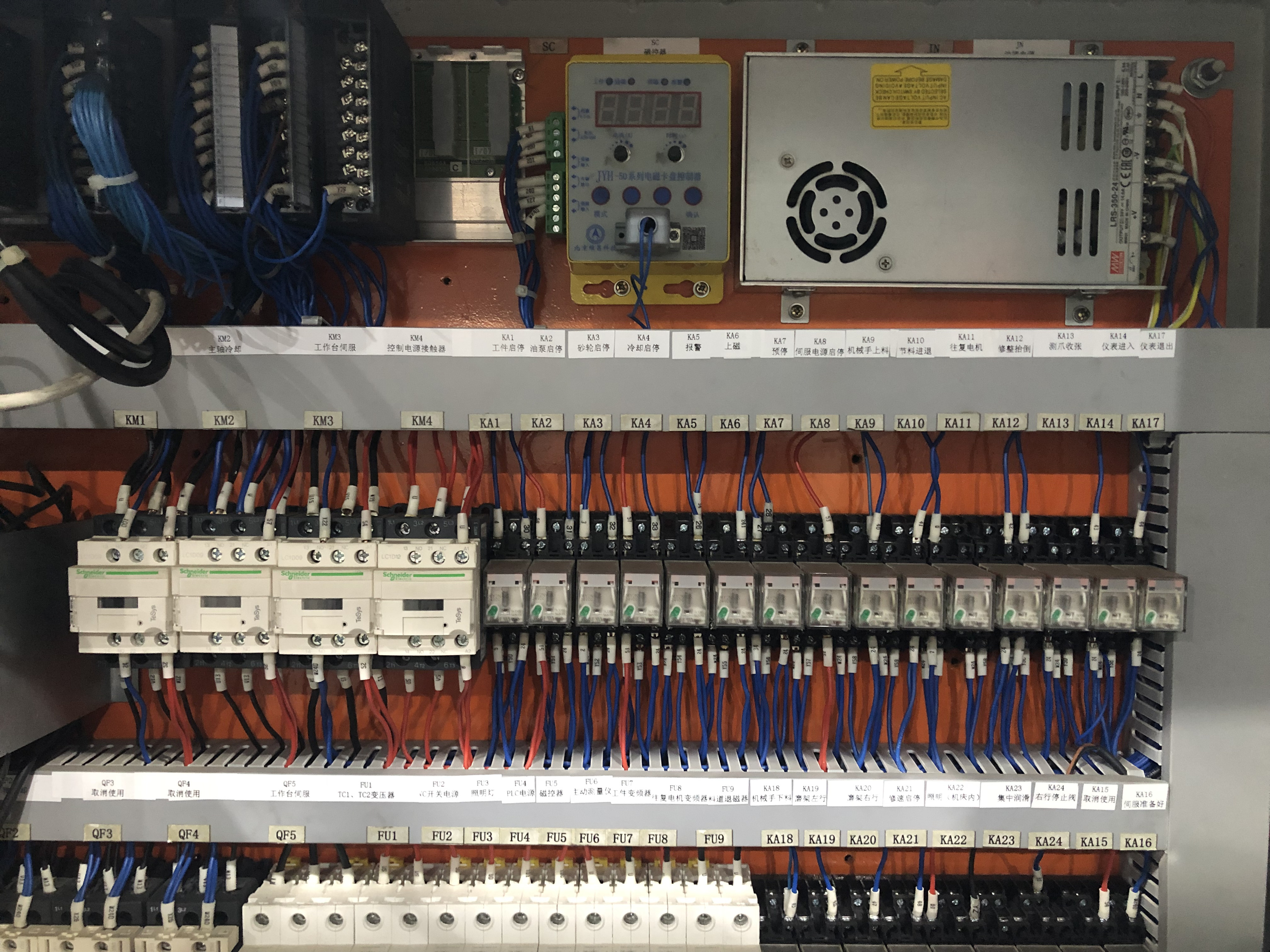 1、機床要配置容量合適的斷路器作為設(shè)備電源總開關(guān),并要求用戶電源進(jìn)線直接接到總開關(guān)的進(jìn)線端,并在合適位置配置電源指示燈。電源總開關(guān)接線應(yīng)遵循上進(jìn)下出原則,確保安全;總進(jìn)線端接線處應(yīng)留有足夠的線纜安裝空間。