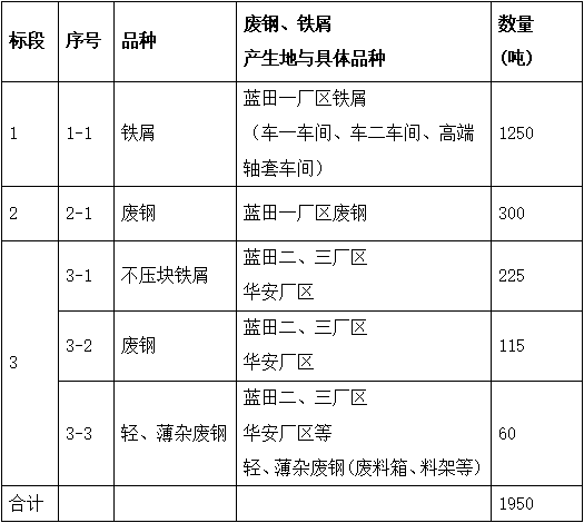 (三)項(xiàng)目?jī)?nèi)容:福建龍溪軸承(集團(tuán))股份有限公司鐵屑、廢鋼等生產(chǎn)性廢料出售,總量約1950噸。