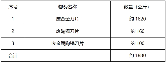 (三)項目內容:福建龍溪軸承(集團)股份有限公司廢刀片出售,總量約1880公斤。