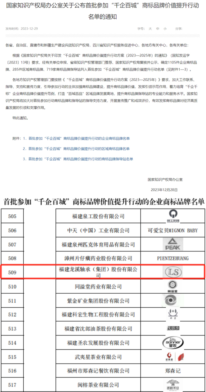 公司始終牢牢把握“質量、標準、品牌”三個著力點,深化品牌培育與建設,強化品牌價值提升、技術與市場創新的良性互動,賦能企業做強做優做大。2023年5月7日,福建首屆品牌價值百強榜單發布,推出100個品牌企業和20個區域品牌,公司的品牌強度位列福建品牌價值百強第4,品牌價值在自主創新品牌中位居第5;12月29日,全國首批“千企百城”商標品牌價值名單揭曉,公司成功入選全國首批1105家(其中福建省43家,漳州市3家)“企業商標品牌名單”,品牌知名度和美譽度再上新臺階。