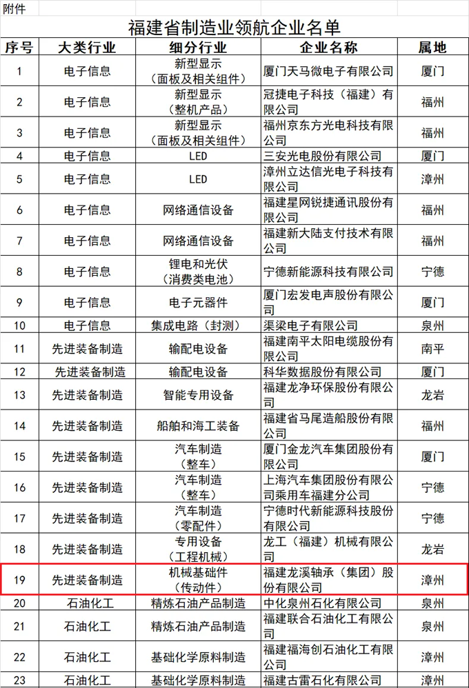 日前,福建省工信廳公布福建省制造業(yè)領(lǐng)航企業(yè)名單,龍軸集團(tuán)光榮入選。