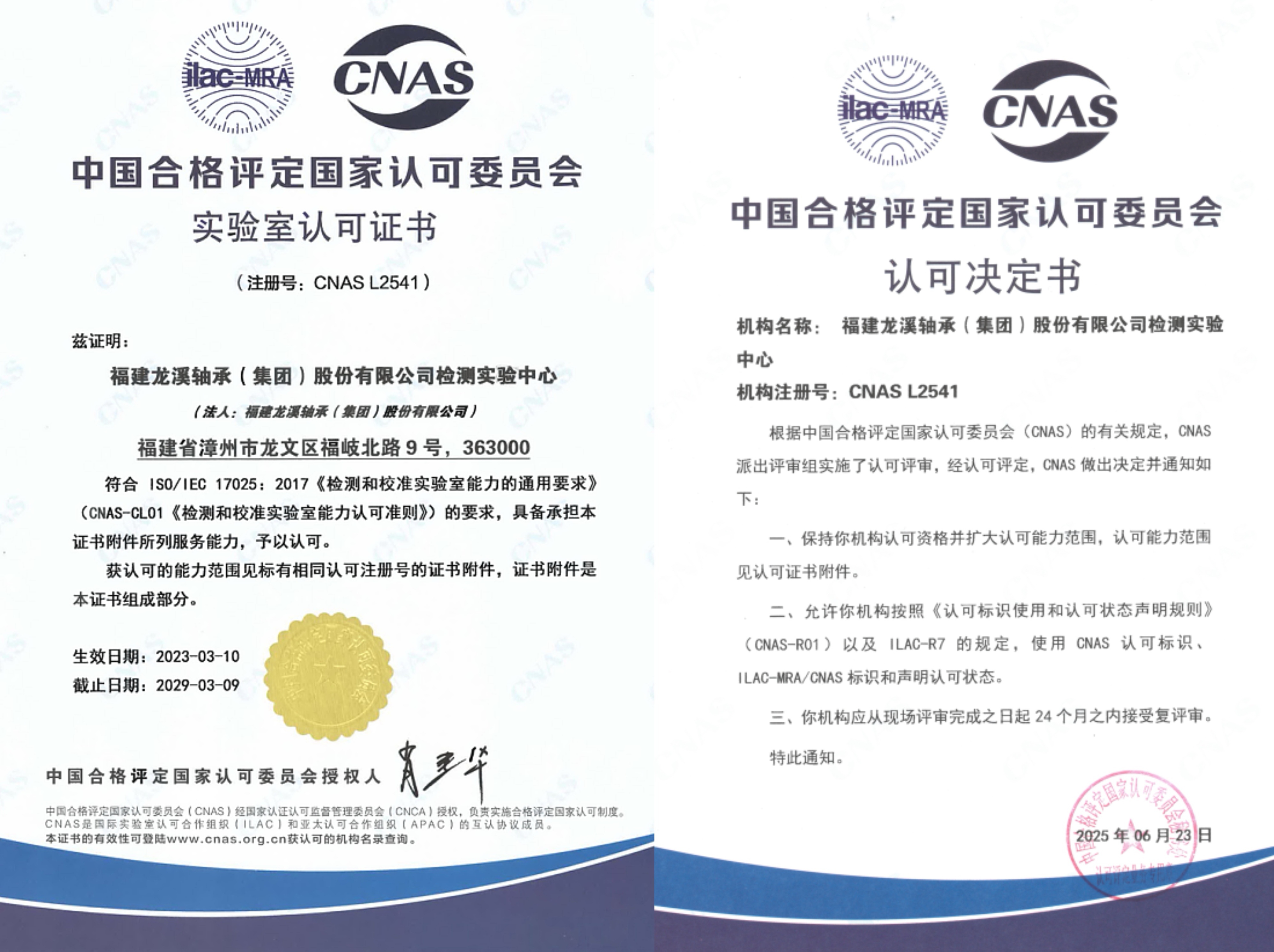 近日,龍軸集團(tuán)檢測實(shí)驗(yàn)中心順利通過中國合格評(píng)定國家認(rèn)可委員會(huì)(CNAS)擴(kuò)項(xiàng)評(píng)審,獲得認(rèn)可決定書和實(shí)驗(yàn)室認(rèn)可證書,標(biāo)志著公司在軸承可靠性驗(yàn)證、材料微觀分析等核心技術(shù)領(lǐng)域?qū)崿F(xiàn)重大突破,已構(gòu)建覆蓋從材料到產(chǎn)品的檢測服務(wù)體系,檢測能力達(dá)到國內(nèi)先進(jìn)水平。