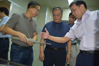 2017年5月9日,田力普(原國家知識產(chǎn)權司黨組書記、局長,左四)、李川(原福建省副省長,左一)到龍軸調(diào)研