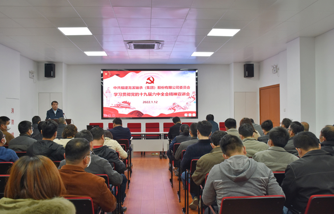 為深入學習宣傳貫徹黨的十九屆六中全會精神,深化公司廣大黨員干部對全會精神的認識理解和準確把握,2022年1月12日,龍軸集團黨委邀請廈門大學馬克思主義學院副教授、碩士生導師李德元作專題宣講。宣講會由公司黨委書記、董事長陳晉輝主持。