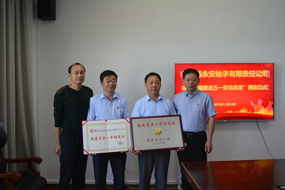 2020年10月19日,福建省五一勞動獎表彰會在福州市工人文化宮舉行,省總工會率先在全國工會系統采用“云表彰”的方式,通過頒獎主會場和三個分會場,對包括福建省永安軸承有限責任公司在內的80個集體頒發了“福建省五一勞動獎狀”,230名個人頒發了“福建省五一勞動獎章”。