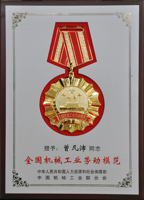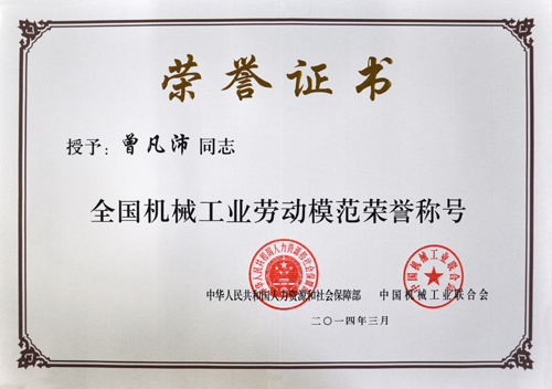 第二屆全國機械工業勞動模范表彰大會近期在北京召開,公司董事長曾凡沛榮獲“全國機械工業勞動模范”稱號,該獎由中華人民共和國人力資源和社會保障部、中國機械工業聯合會聯合評選,以表彰全國機械工業出類拔萃的工作者。
