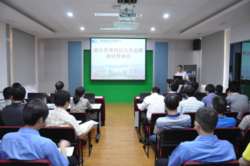 2014年4月27日-5月4日,公司共分五場在二樓會議室(四樓會議室)進行部分管理崗位公開競聘演講答辯。此次競聘包括了車間主任、車間副主任、車間調度、設備動力部部長、質量管理部部長、國內市場部副部長(主持)、科技管理部部長(或主持)、科技管理部副部長、安全與環境管理部部長(或主持)、黨支部副書記(兼副主任)、團委副書記等11個崗位,共有67名競聘者參加了競聘演講答辯,是公司歷年來競聘崗位數量、參加競聘人數最多的一次。