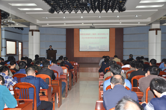 2019年1月29日,龍軸集團黨委2018年度班子成員述責述廉會議在公司俱樂部會議室舉行。漳州市國資委副調研員倪昌源,漳州市紀委副科級紀檢監察員于慧瑤到會指導。公司班子成員、各部門(車間)負責人、各黨總支、黨支部負責人,部分“兩代表一委員”和基層黨員職工代表參加會議。會議由公司黨委書記、董事長曾凡沛同志主持。