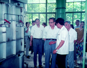 1990年4 月16日,唐仲文(時任機電部副部長,左三)及福建省機械工業廳領導視察龍軸