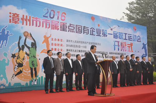 漳州市國資委主任黃建平在開幕式上發表講話。他指出,本次運動會是漳州市國有企業廣大職工精神文明風采的一次檢閱,對發動全市廣大國有企業職工凝心聚力,把“更高、更快、更強”的體育精神融入實際工作及踐行“漳州發展、國資有為”必將起到很好的推動作用。