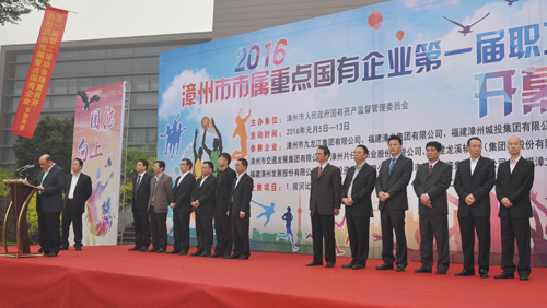 2016年1月5日上午,微雨,天氣寒冷,運動會開幕式現場碧湖生態園廣場卻人聲鼎沸,熱鬧非凡,漳州市國資委機關全體干部、各市屬重點國有企業領導班子成員、全體運動員、裁判員代表和各企業職工代表共1000多人參加了開幕式。
