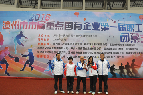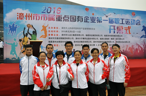 2016年1月5~16日,漳州市國資委主辦的市屬重點國有企業第一屆職工運動會如期舉行。公司精心選拔52名運動員參加拔河、羽毛球團體、乒乓球團體、籃球四個項目比賽。經過12天的奮勇拼搏,公司羽毛球隊榮獲羽毛球團體賽亞軍,撥河隊、乒乓球隊、籃球隊獲得鼓勵獎。