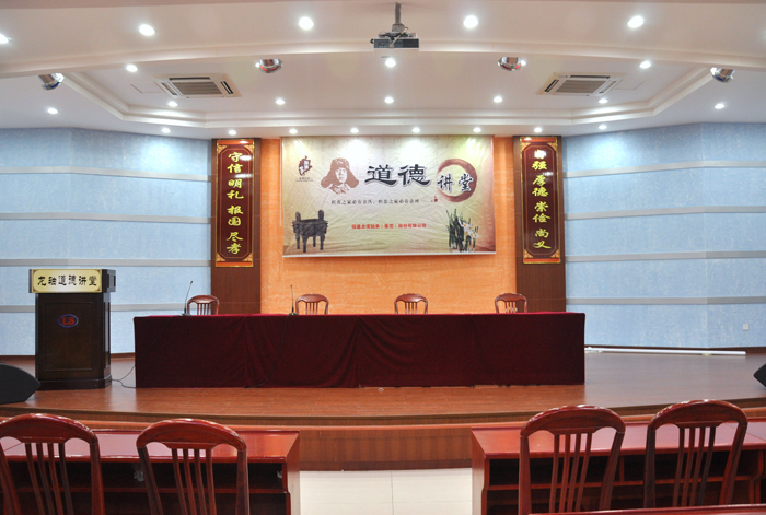 圖2:龍軸道德講堂概貌,前視,講臺背景為市文明委統(tǒng)一設(shè)計