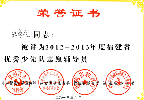 張?zhí)┥?975年7月參加工作,大專學歷,現任福建龍溪軸承(集團)股份有限公司黨委副書記兼工會主席,作為一個少先隊志愿輔導員,他熱誠服務,積極引導廣大少年兒童勤奮學習、快樂生活、從小樹立遠大理想,使漳州市通北中心小學全體少先隊員的素質得到全面發(fā)展,促進他們健康快樂成長,為通北中心小學少先隊的工作盡自已一份的微簿之力。近幾年來先后獲“福建省優(yōu)秀企業(yè)思想政治工作者”、“第三屆全省企業(yè)關心支持青年工作優(yōu)秀黨政領導”、“熱心支持工會工作的黨政領導干部”等光榮稱號。
