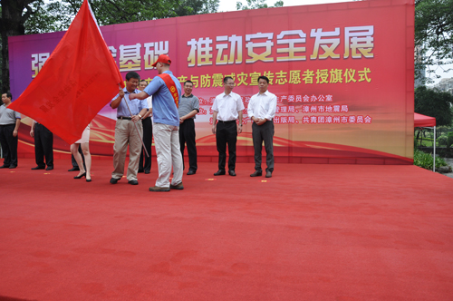 今年5月份是全市第二個(gè)防震減災(zāi)宣傳月,6月份是全國(guó)第十二個(gè)“安全生產(chǎn)月”。6月13日上午,公司黨委副書記張?zhí)┥鷰ьI(lǐng)15名安全生產(chǎn)志愿者代表國(guó)資系統(tǒng)參加漳州市2013年安全生產(chǎn)與防震減災(zāi)宣傳志愿者授旗儀式