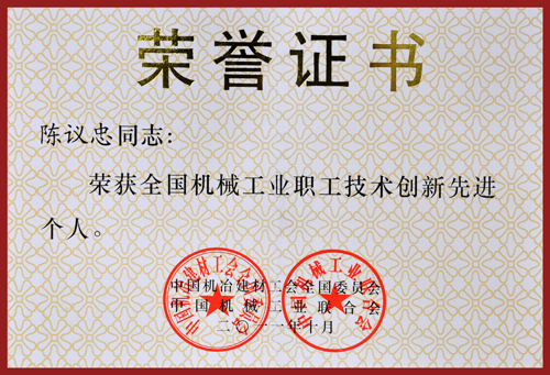 | 個(gè)人 | 第二屆機(jī)械工業(yè)高技能人才優(yōu)秀論文(技能類(lèi))二等獎(jiǎng)(陳崇明 顏楊豐) | 中國(guó)機(jī)械工業(yè)企業(yè)管理協(xié)會(huì),中國(guó)機(jī)械職業(yè)技能鑒定指導(dǎo)中心 | |