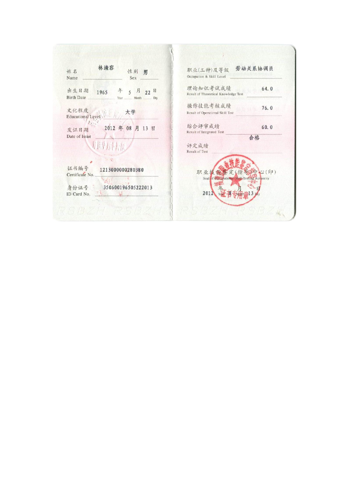 勞動關系協調師二級證書